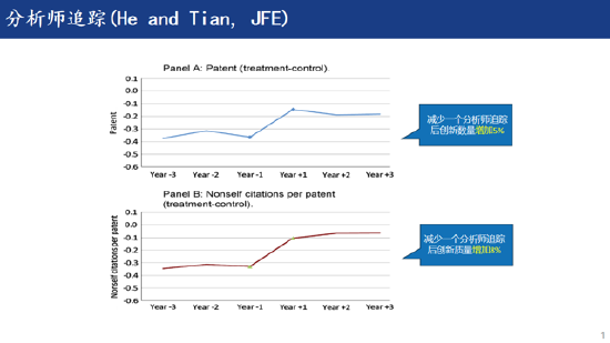 如何塑造“低活性”二级市场?田轩给出四大路径:一是设置AB股、交错董事会等强力反收购条款,稳定上市公司控制权以隔绝短期资本干扰;二是适度控制股票流动性,过高流动性易吸引“门口的野蛮人”和短期投机者,研究显示其可能导致企业创新数量下降11%;三是培育长期机构投资者,通过聚焦主营业务、优化资源配置,实现研发效率的V形反转;四是优化信息披露与分析师追踪机制,建议延长财报披露周期至半年,减轻企业短期业绩压力,为创新预留空间。